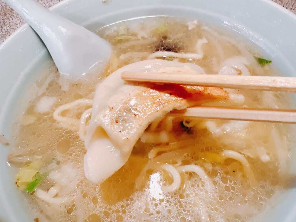 こちらは餃子。餃子もニンニクが効いていてとてもおいしい。