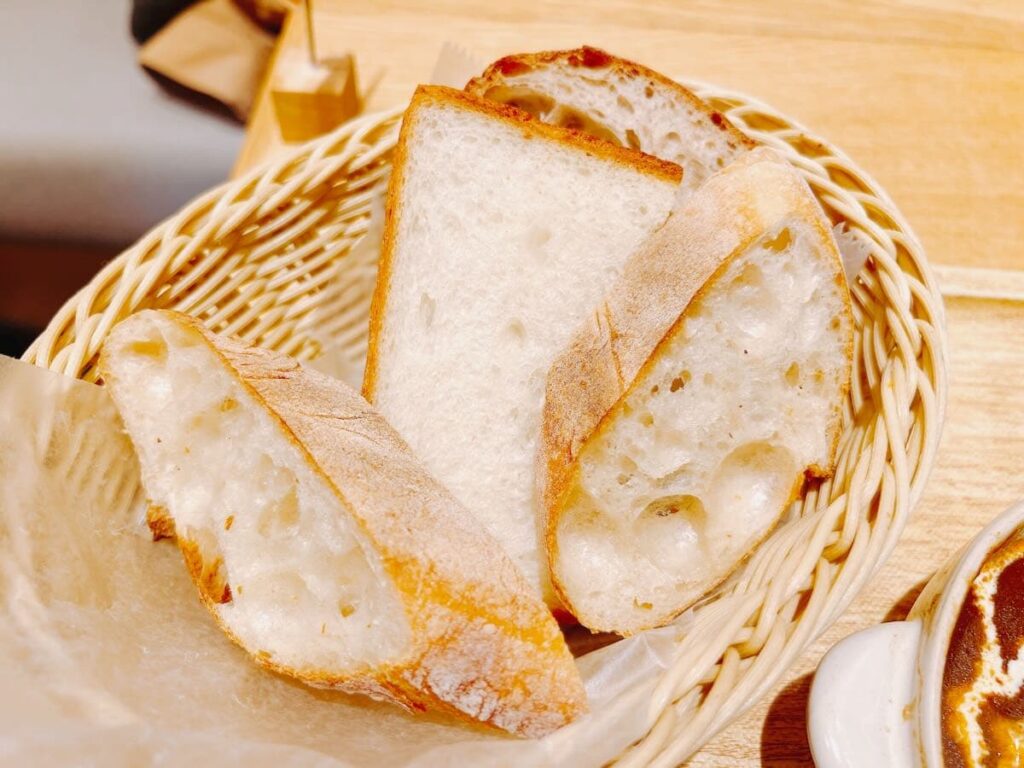 こちらが食べ放題のパン。バゲット、食パンなど、4種類ほどが入っていました。おかわりするまでもなく、満足できるボリュームです。