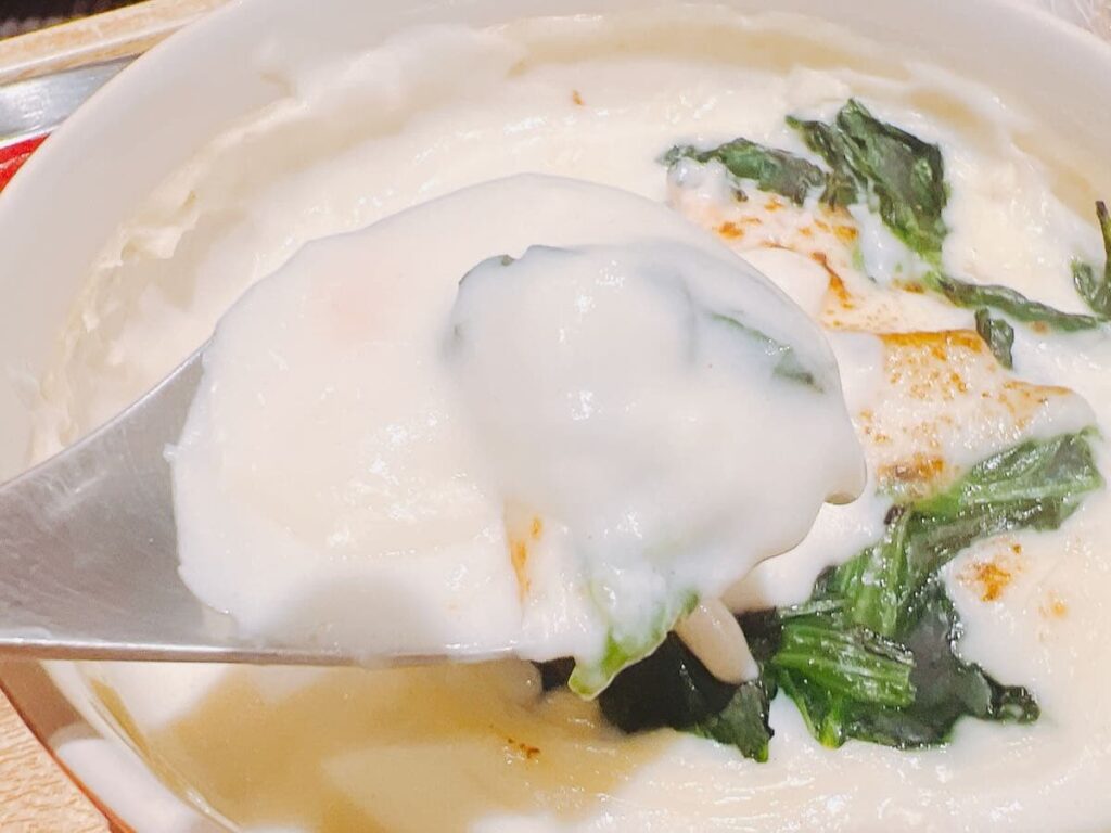 ほうれん草とチーズがたっぷりと入っていてこちらもおいしいです。