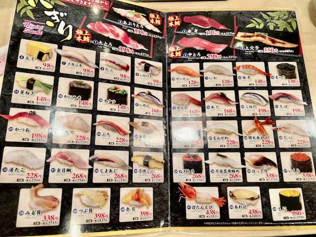基本的ににぎりは1個100円ほどからです。主な値段は以下のようになっていました。(2022年1月時点。税込)