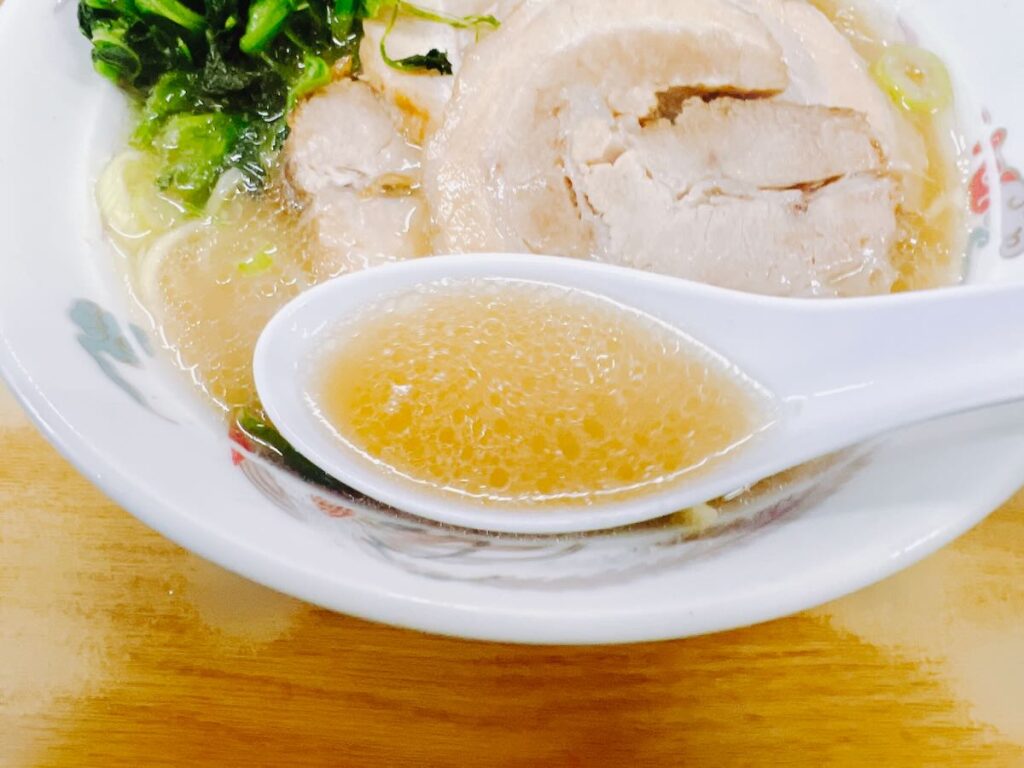 スープですが、マイルドさ、塩加減、油加減など、ちょうどいい塩梅で、個人的にはどんぴしゃの味です。