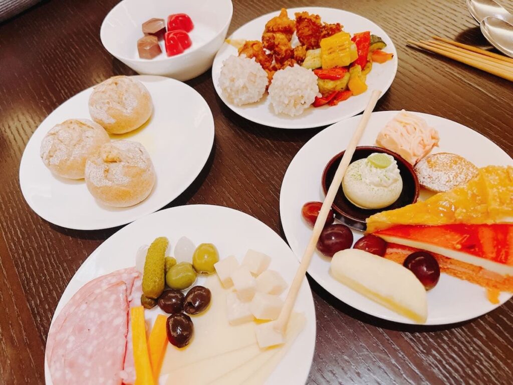 日中は「ティータイム(デイスナックタイム)」として、コーヒー・紅茶・ソフトドリンクを片手に、軽いお菓子やスナックをつまみながら休憩できる時間帯です。観光の合間に“いったん整える”のにちょうどよく、ラウンジの雰囲気も比較的落ち着きやすい印象。