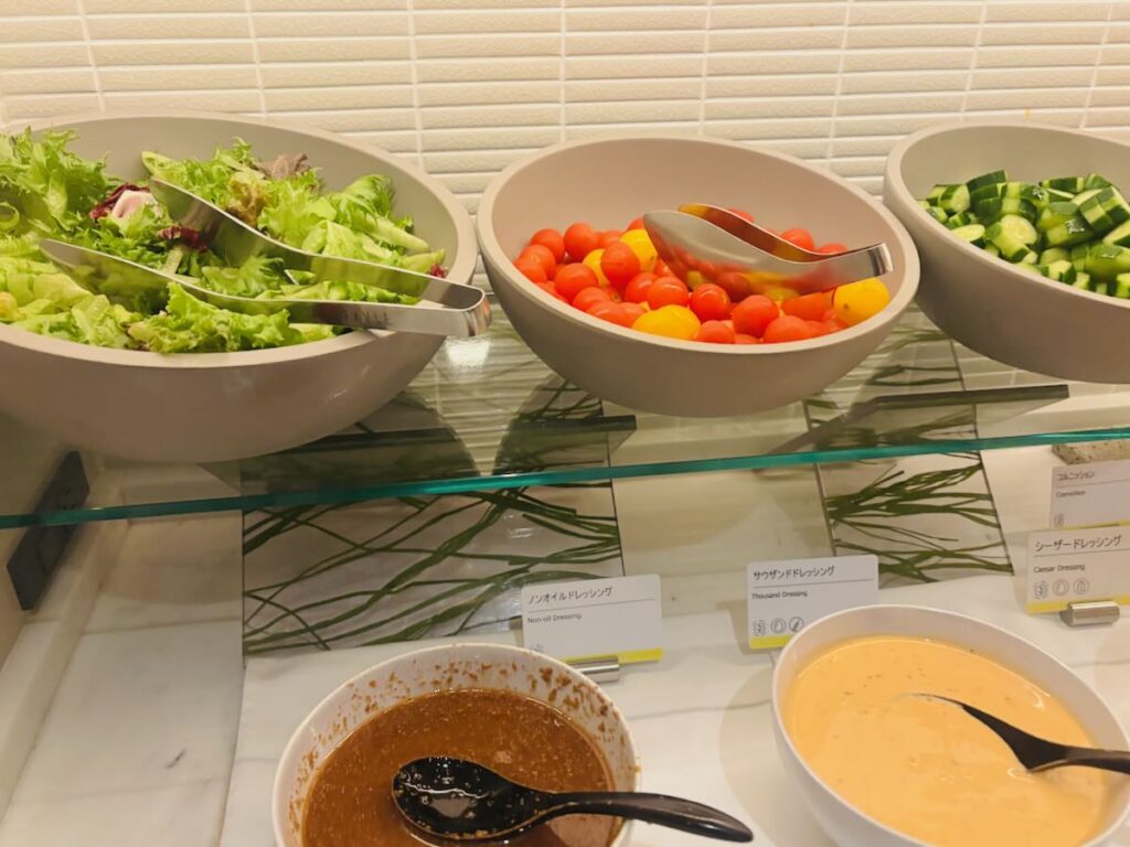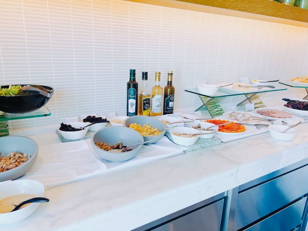 クラブラウンジの“メインイベント”がカクテルタイム。アルコール(ビール、ワイン等)と、食事系のアイテムが充実しやすい時間帯で、軽めの夕食代わりにする人も多いです。人気が集中しやすく、混雑時は2部制など運用が変わることがあります。